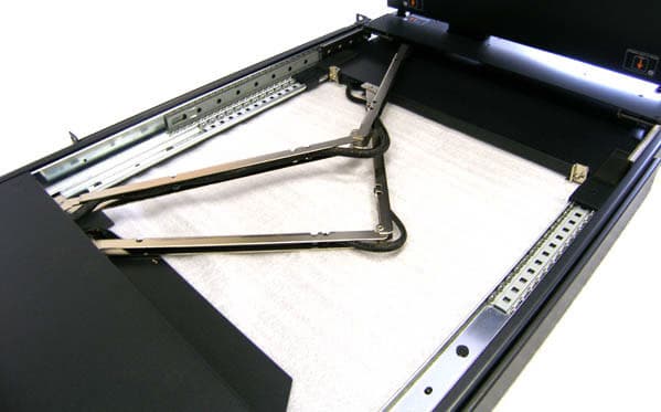 - Нет бортиков вокруг них, монитор и клавиатура выдвигаются независимо друг от друга