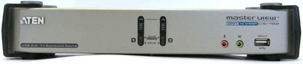 Продолговатая металлическая коробка, на лицевой стороне две кнопки для переключения каналов, а также разъём хаба USB и два стереоразъёма для подключения гарнитуры. Очень, очень грамотное и своевременное решение. Включать наушники в KVM много удобнее в большинстве случаев, чем даже в лицевую панель системного блока, не говоря о задней его поверхности.