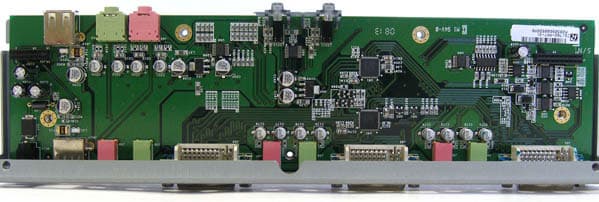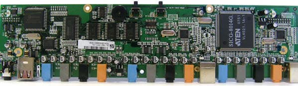 Остальные разъёмы для коммутации устройств находятся на задней панели. Кроме того, там же гнездо для кабеля питания и перепрошивки ПЗУ, и ещё один вход хаба USB.