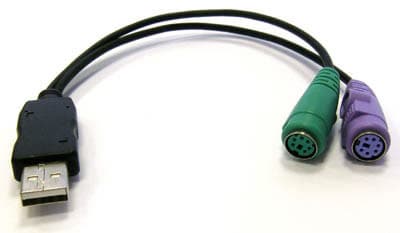 - активный переходник для подключения клавиатуры и мыши с двумя интерфейсами PS/2 к одному порту USB, логика смонтирована в этом разъёме.