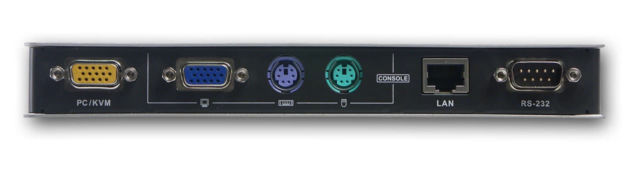 - три порта (монитор, клавиатура, мышь) для подключения к контролируемому компьютеру напрямую (таким образом, ATEN-6000 превращается в обычный KVM-переключатель, у которого присутствует только один порт — для возможности, без перетыкания проводов, подключится к администрированной машины локально);