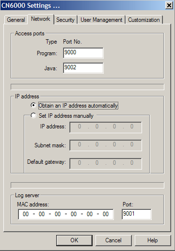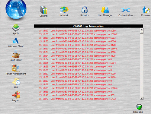 В разделе Network настраивается IP адресация устройства, задаются порты для удаленного доступа к управляемым посредством CN-6000 компьютерам. А так же тут можно указать MAC-адрес машины, на котором расположена программа "Log Server", которая хранит лог файлы (события), отсылаемые с KVM-переключателя (если ее не задать, логи будут хранится на самом KVM и посмотреть их можно будет с веб-интерфейса). Этой машиной (для Log-сервера) может являться любой компьютер, на котором стоит Windows и запущена обсуждаемая программа. Проблема лишь в том, что компьютер должен находится в том же сетевом сегменте (грубо говоря , подключен к тому же коммутатору), что и сам KVM CN-6000, поэтому полезность данной "фичи" вызывает сомнение.