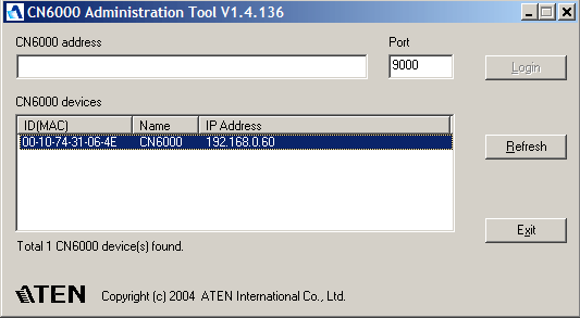 Утилита администрирования CN-6000 полезна тем, что позволяет найти устройство в сети, даже если его IP-адрес не принадлежит той подсети, в которой мы находимся, достаточно лишь, что бы мы (компьютер, с которого мы пытаемся получить доступ к CN-6000) находились в том же сегменте локальной сети, что и KVM-переключатель.