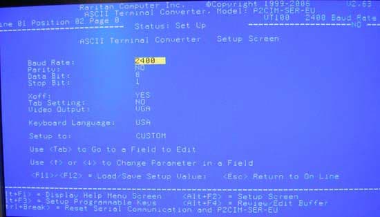 Модули предназначены для серий KVM Paragon и Dominion KX, однако полностью совместимы и с тестируемой моделью. Они обеспечивают эмуляцию терминальной ASCII консоли с параметрами экрана 800 × 600 @ 60 Гц. Непосредственно такой разъём подходит к COM-порту ПК, но с помощью переходников может быть соединён и с другими вариантами распайки последовательного порта.