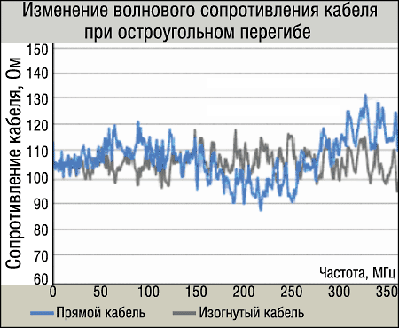 Кабели жгутовались и без коробов подвешивались на крюки в стене. Как уже говорилось, в электропроводных системах приходится учитывать не только затухание, но и наводки. В нашем случае, благодаря тому что кабельные фрагменты при их монтаже оказались сложенными вдвое, наводимые низкочастотные помехи от люминесцентных ламп, пролегающих в непосредственной близости от силовых, сигнальных кабелей и т. п., как мы и предполагали, уменьшились (синфазность воздействующей на жгут кабелей помехи).