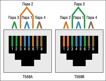 Варианты обжима разъемов RJ-45