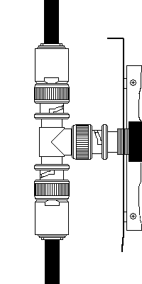 При удалении компьютера из сети или в том месте где планируется подключать компьютер, для сохранения работоспособности сегмента сети, лучше ставить простую перемычку из коаксиального кабеля. Можно использовать один из двух подводящих проводов.