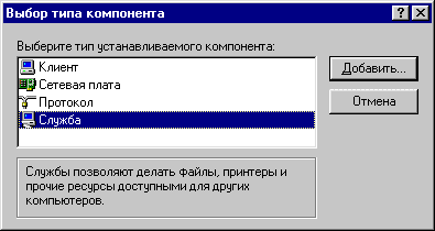 Выберите "Служба" и нажмите "Добавить". |