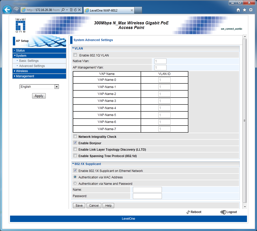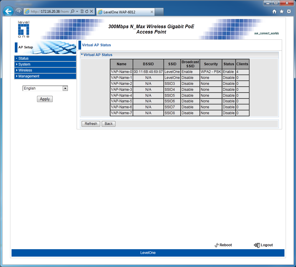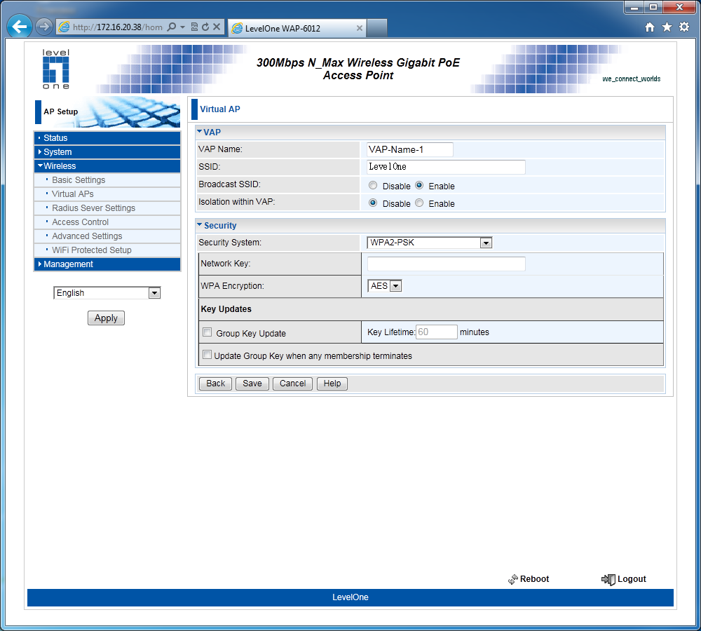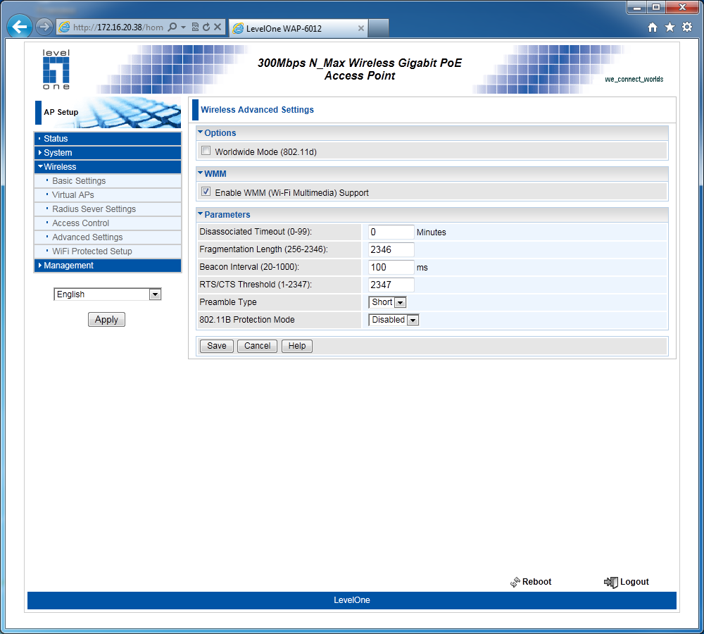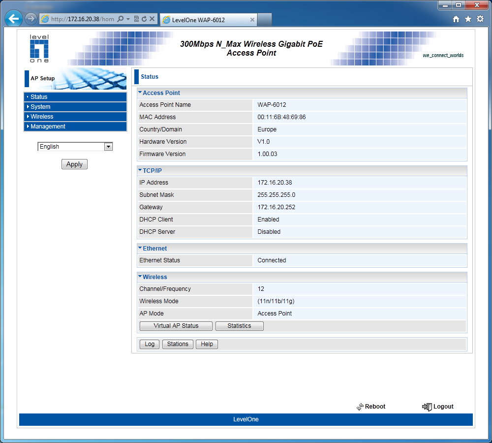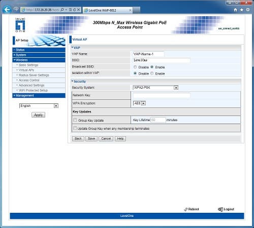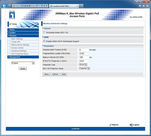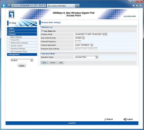 Точка доступа Level One WAP-6012, построенная на базе платформы компании Atheros, может быть интересна как домашним пользователям, так и для компаний, которым хочется увеличить скорость и зону покрытия беспроводной сети с использованием стандарта 802.11n. Кроме основного ее предназначения, возможна реализация беспроводных мостов и работа в режиме клиента для устройств, которые хочется использовать через Wi-Fi. Настройки и возможности в целом обычны для данного класса моделей. Выделяется только поддержка нескольких виртуальных сетей, VLAN и PoE.
