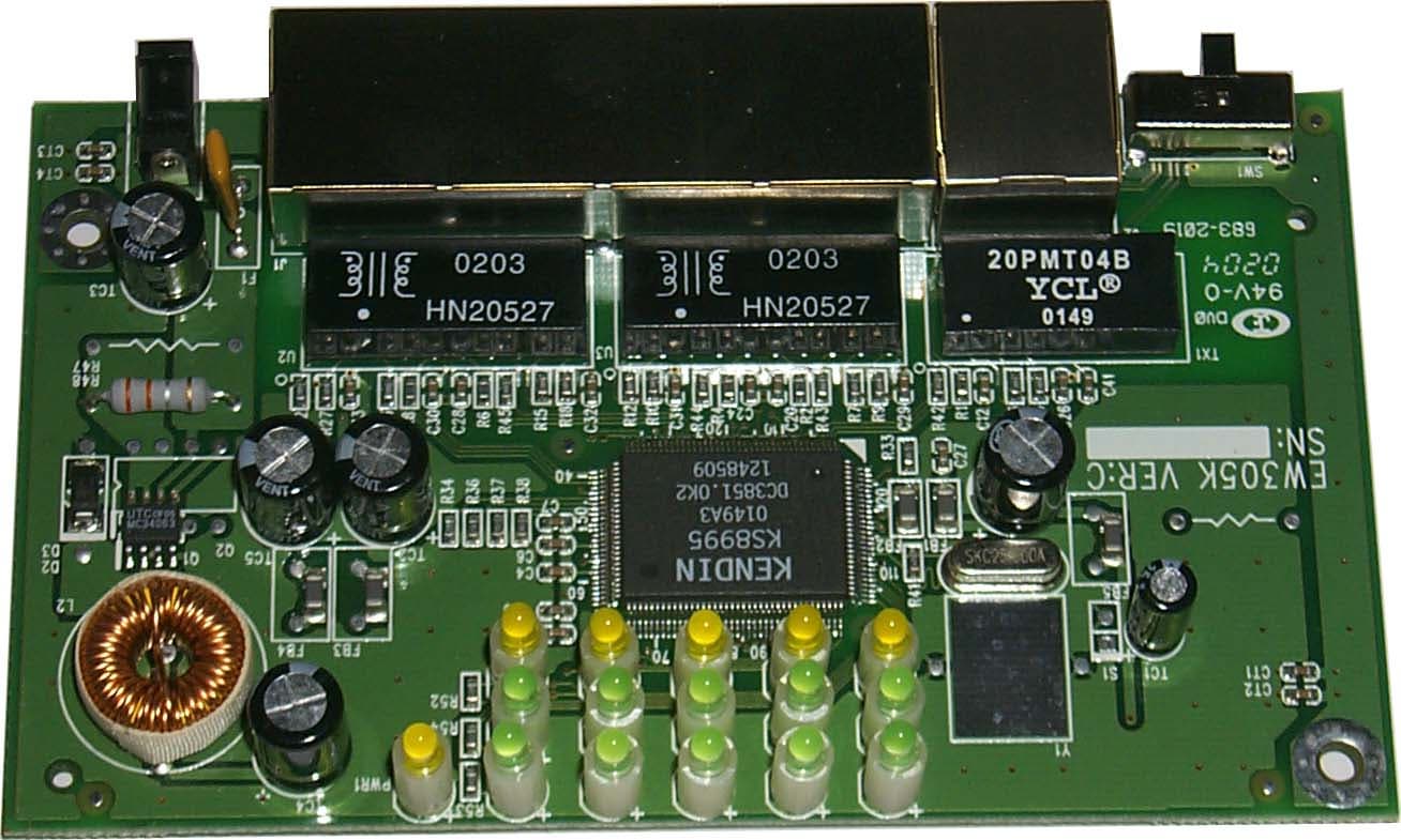 Устройство собрано на основе уже знакомого нам микропроцессора KS8995 фирмы KENDIN Communications.