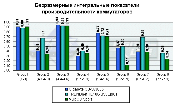 Диаграмма сравнения производительности с предыдущими моделями коммутаторов, цифры рассчитываются согласно методике, используя безразмерные интегральные показатели.