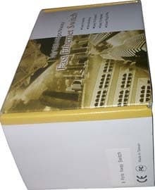 Как уже было замечено в предыдущих обзорах, оформление упаковки продуктов компании несколько страдает — узнать, что лежит в коробке, можно только по маленькой наклейке сбоку. Это, конечно, не критично и никоим образом не влияет на какие-либо характеристики коммутаторов, но, как говорится, осадок остается :)