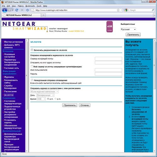 Журнал ведется в обычном текстовом виде. Он достаточно подробный, не имеет настроек выбора протоколируемых событий. Предусмотрена отправка его на электронную почту администратора по расписанию. SMTP-сервер можно запрограммировать с аутентификацией пользователя, а вот шифрование для данной функции не поддерживается.