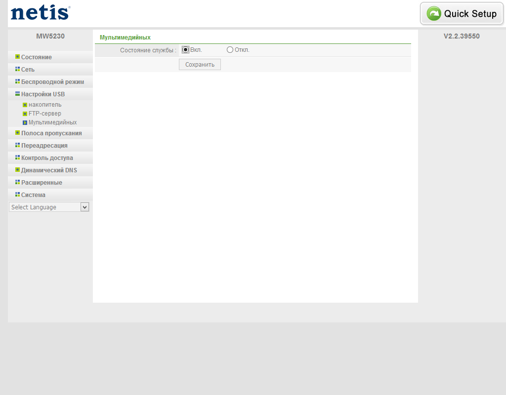 Устройство оборудовано одним портом USB, поддерживающим накопители и сотовые модемы. Но работу с USB-хабом оно не поддерживает, так что в каждый момент времени использовать можно только одно внешнее устройство. Отметим также, что кнопки безопасного отключения накопителя мы не нашли. Никакой страницы для проверки статуса внешнего диска здесь тоже нет.