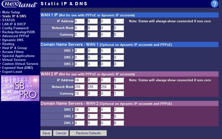 Понятно, что все вышеперечисленные возможности с двумя WAN-интерфейсами будут доступны лишь тем, кто имеет две выделенные линии. Безусловно, таких немного. Поэтому остальным, наверное, стоит остановиться на модели ISB 800PRO, отличающейся от своего собрата лишь отсутствием одного WAN-порта. На этом можно сэкономить приблизительно $100 (цены рассчитывались на момент публикации).