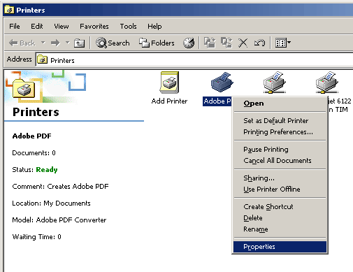Предоставление в общий доступ (расшаривание) принтеров производится аналогичным способом. На компьютере, к которому подключен принтер, выбираем его значок (через пуск —> принтеры), жмем на нем правой кнопкой мыши, выбираем свойства (properties).
