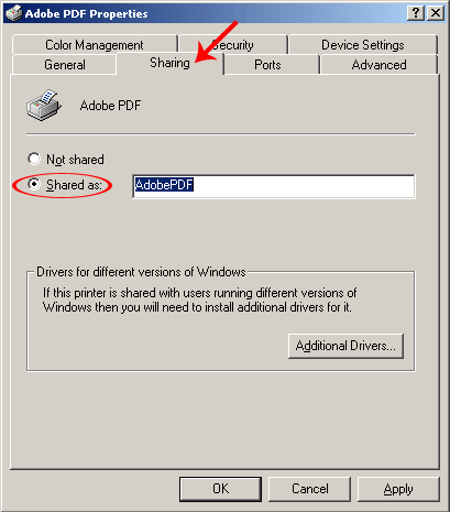 Управление общим доступом к принтеру осуществляется в закладке Sharing. Нужно выбрать пункт Shared As и ввести имя принтера, под которым он будет виден в сетевом окружении.
