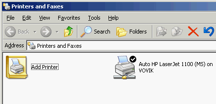 На других компьютерах, подключенных к той же локальной сети, сетевой принтер, скорее всего, сам появится в меню принтеров. Если этого не произошло, запускаем значок Add Printer (добавить принтер),
