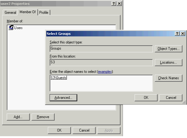 Member of —> Add, в появившемся окне жмем на Advanced (дополнительно)