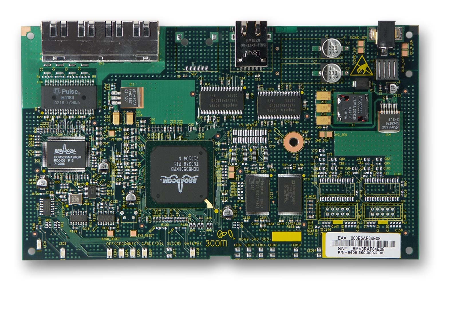 Более подробных спецификаций основного процессора устройства – микроконтроллера BCM6350 и контроллера BCM5325, выполняющего роль 100Mbit Ethernet коммутатора, не появилось (строго говоря, спецификаций не удалось найти вовсе), поэтому не вижу смысла повторять информацию про них, написанную в статье 3Com OfficeConnect Cable/DSL Secure Gateway.