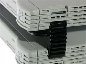 Так же можно разместить устройства в своеобразном «стеке», друг над другом при помощи идущего в комплекте пластикового зажима. Причем этот стек можно продолжить вверх сколь угодно высоко.