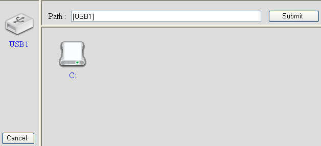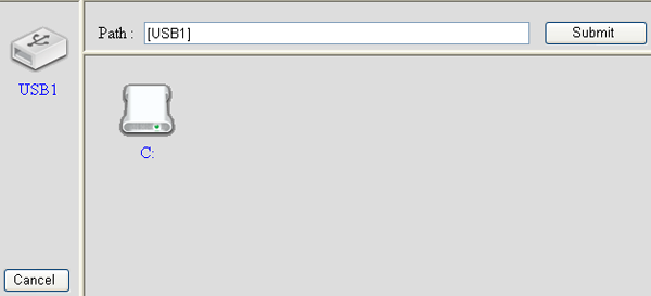 открывается popup-окно браузера, показывающее список устройств, разделов на устройствах и директорий в разделах. На данном скриншоте видны искаженные имена файлов, которые появляются по причине проблемы работы с кириллицей — этого вопроса коснемся отдельно в конце данного раздела.