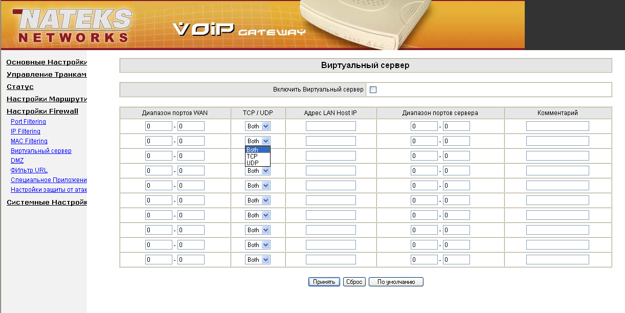 - Аппаратная поддержка трансляции адресов и портов (для TCP и UDP протоколов)