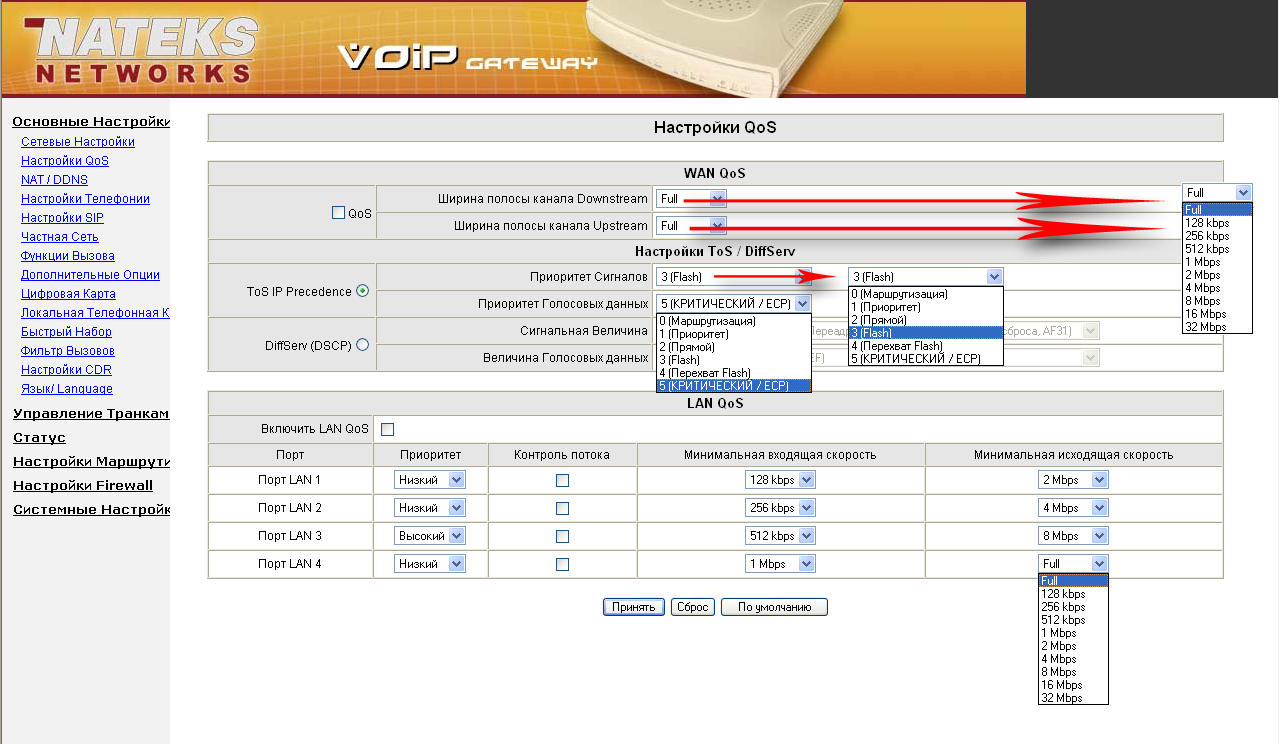 Также имеется поддержка QoS с возможностью задания QoS-политик.