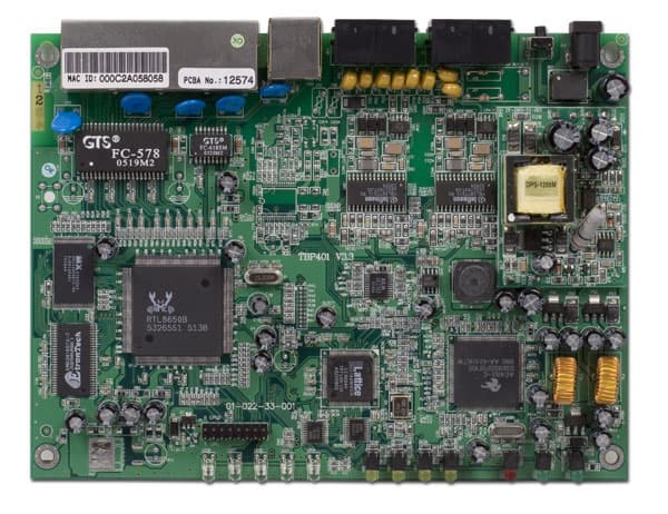 - Voice over Packet процессор AudioCodes AC482-C (поддержка 4-х каналов, аудио кодеки G.711 PCM (64 kbps), G.726 ADPCM (16-40 kbps), G.727 E-ADPCM *16–40 kbps), G.729A/B CS-ACELP, G.723.1 MP-MLQ (6,3 kbps), G.723.1 ACELP (5,3 kbps), Netcoder (6,4–9,6 kbps))