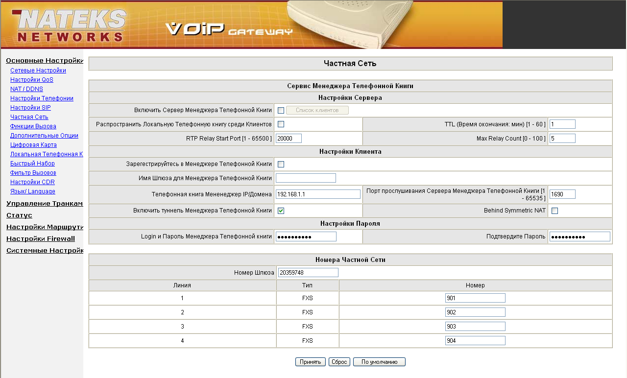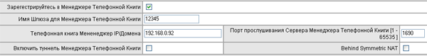 Здесь также указывается имя, под которым шлюз будет зарегистрирован, адрес сервера Phone Book Manager. Также требуется задать пароль для доступа к серверу.