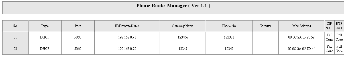 Как говорилось выше, внутренние номера (901-904) можно использовать при звонках в пределах одного шлюза. Если мы хотим позвонить на другой шлюз с использованием Phone Book Manager — нам нужно сначала набрать заданный номер шлюза, после чего набрать вызываемый внутренней номер телефона.