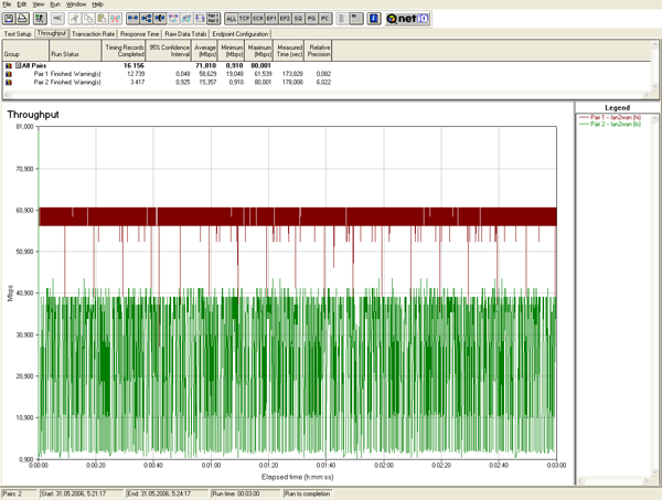 Как выглядит распределение скоростей при назначении одному потоку трафика высокого приоритета, а другому — низкого можно увидеть на рис. 14