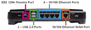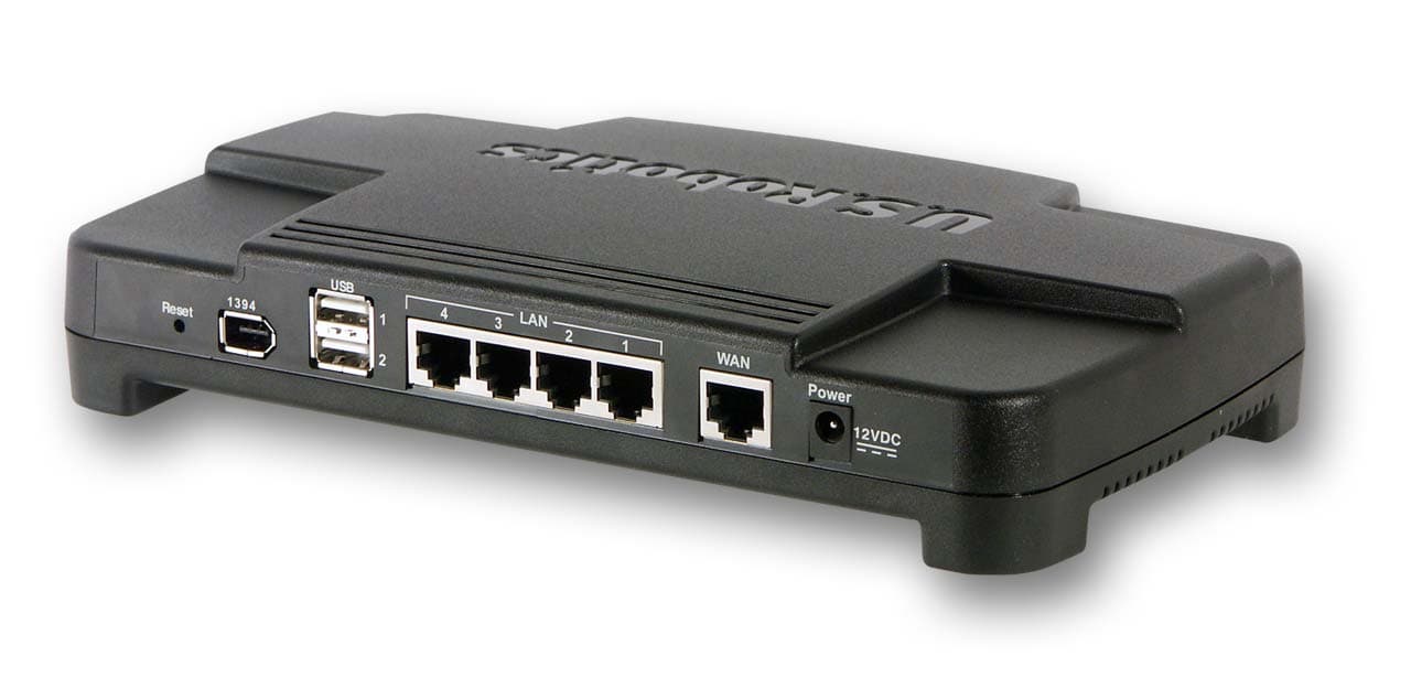 Все интерфейсы находятся в задней части корпуса USR8200. Кроме традиционных 4 LAN, 1 WAN портов, кнопки Reset и коннектора питания, хорошо видны два порта USB 2.0 и один — FireWire интерфейсов. Они предназначены для подключения внешних систем хранения данных (NAS, network attached storage) с одноименными интерфейсами, например, U.S.Robotics 250GB USB 2.0 + FireWire Storage Drive. Также ничто не мешает подключить к USB порту USB-Flash диск. Конечно, по сравнению с NAS-системами объемы не сопоставимы, тем не менее, Flash-диски объемом несколько гигабайт уже существуют.