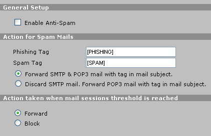 Устройство позволяет проводить отсеивание спама. Для этого можно использовать так называемые "черный список" и "белый список", а также использовать внешнюю базу данных, для отсеивания спама. В "черный" и "белый" списки можно добавлять правила, указывая E-Mail-адрес отправителя, IP-адрес отправителя или определенную пару параметр-значение MIME-заголовка.