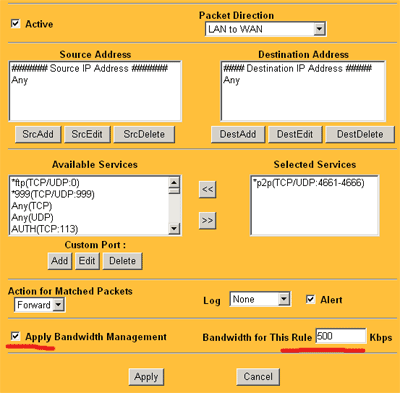 В любом случае, так как задать «правильные» полосы, где можно учесть исходный порт отправителя нельзя, функции QoS в ZyWALL слабо применимы.