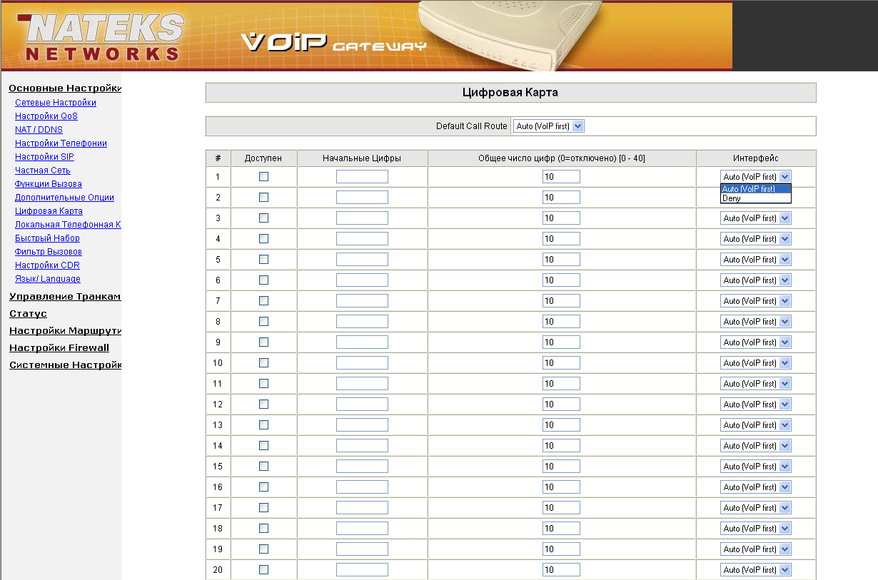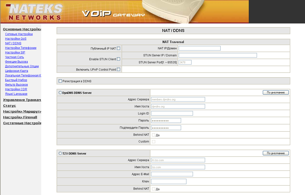 Internet-маршрутизатор и VoIP-шлюз Nateks Networks Voicecom 115-2 - скриншоты WEB-интерфейса устройства