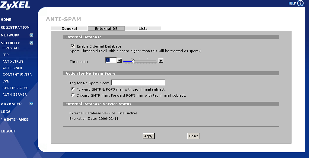 Интернет-маршрутизатор ZyXEL ZyWALL 5 - скриншоты WEB-интерфейса устройства