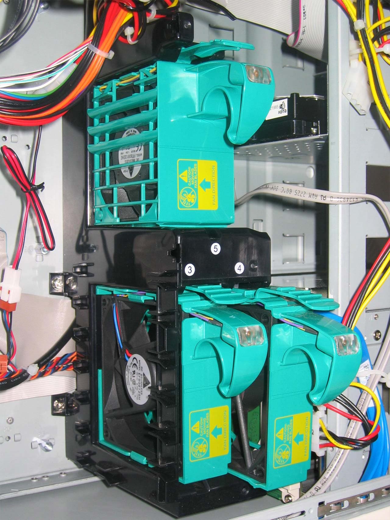 Позади блоков питания есть два ветродуя.