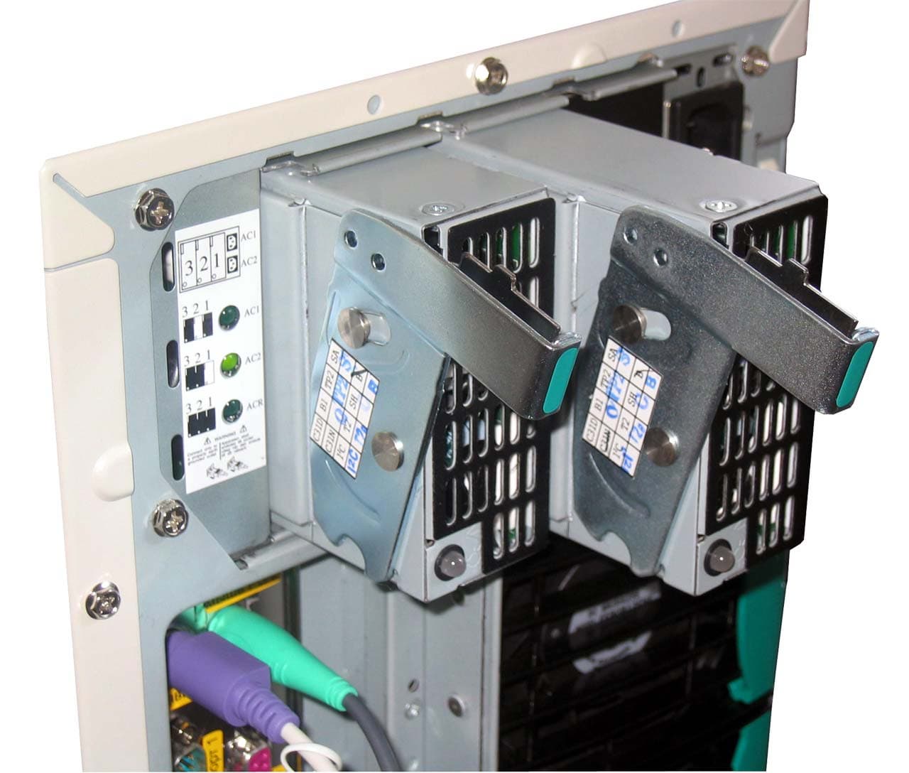 Два разъёма питания позволяют подключить сервер к независимым линиям.