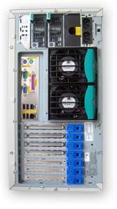 То есть он удовлетворяет требованиям организации, где всего несколько серверов. Для них это будет сбалансированный сервер. В более крупных организациях, где парк серверов больше, не стоечное исполнение, отсутствие взаимозаменяемости компонентов с остальными серверами, как-то память (во второй конфигурации память регистровая), блоки питания, лишь увеличат стоимость сопровождения. Так же неплохо Raptor будет смотреться в рабочей станции, тем более что Serial ATA контроллеры есть во всех новых компьютерах.