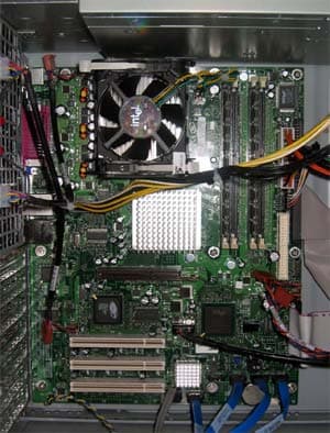 Ещё более тяжёлая судьба была у материнской платы. Опять же по соображениям доступности ничего кроме Intel'а мы не рассматривали. Выбор пал на Intel Entry Server Board S875WP1LX. Большой производительности от данного сервера не требуется, а вот сэкономить на процессоре/плате можно неплохо. Хотя главное из-за чего бралась эта плата — это 6(!) встроенных SATA-портов.