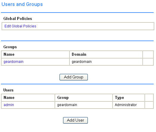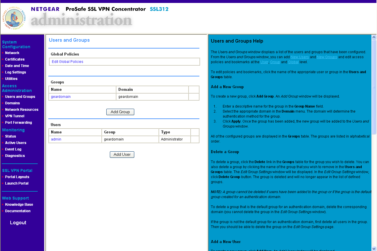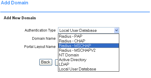 Устройство поддерживает работу с несколькими доменами аутентификации — необходимый домен выбирается при входе в систему. Для аутентификации на устройстве возможно использование локальной базы данных пользователей и паролей, домена Windows NT, LDAP-сервера, сервера Active Directory, RADIUS-сервера (PAP, CHAP, MSCHAP, MSCHAPv2) — для доступа к устройству с использованием аутентификации через удаленный сервер, сервер должен быть доступен, и до него должна быть настроена маршрутизация трафика (при необходимости). Для простоты картины мы будем рассматривать устройство с использованием только локальной базы данных пользователей.