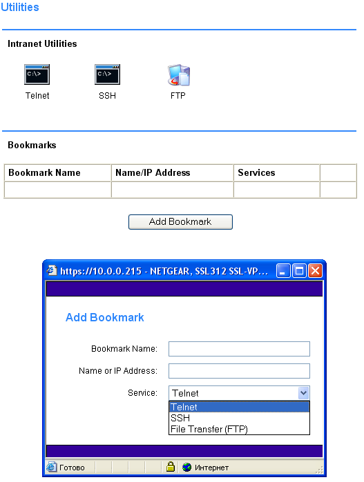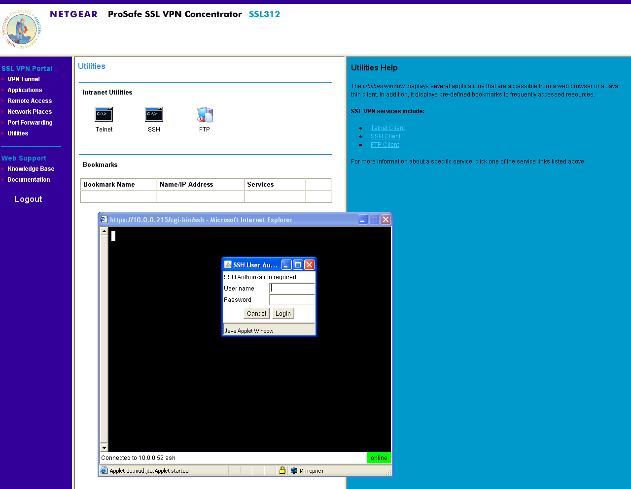 Устройство также содержит несколько Java-утилит (для использования данных утилит требуется скачать и установить с сайта компании Sun Microsystems среду выполнения Java — JRE — Java Runtime Evironment): Telnet-клиент, SSH-клиент и FTP-клиент.