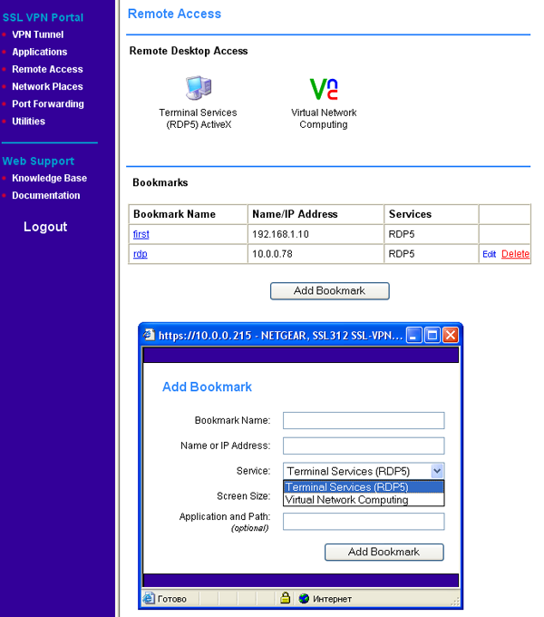 Таким образом, данное устройство позволяет получить доступ в удаленную локальную сеть без использования сложных специальных приложений — для доступа в удаленную сеть используется всего лишь один единственный TCP-порт — порт 443 (HTTPS). Таким образом, для осуществления полноценного доступа к удаленной локальной сети нам достаточно задать одно правило на маршрутизаторе для осуществления полноценного доступа ко всем сервисам.