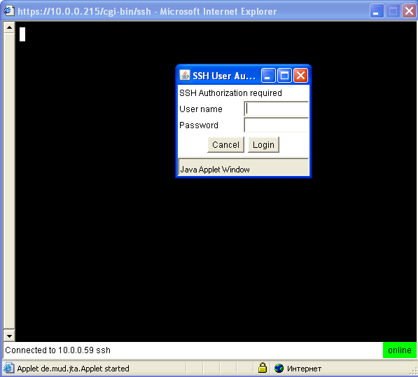 Как говорилось выше, ряд функций портала реализованы через ActiveX приложения и устанавливаются прямо из браузера. Для таких функций, как Telnet и SSH-клиент потребуется установка JRE (Java Runtime Environment), который можно скачать на сайте компании Sun Microsystems.