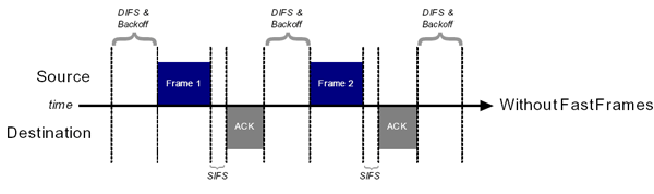 Технология Fast Frames предлагает слияние двух кадров в один, большего размера. Тем самым, мы избавляемся от служебной информации (в заголовке второго пакета — остается лишь один заголовок нового кадра) и временных пауз ожидания между кадрами:
