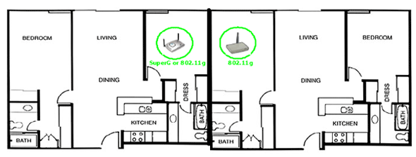 рис.5, Super G Turbo и обычная точка доступа находятся в соседних домах