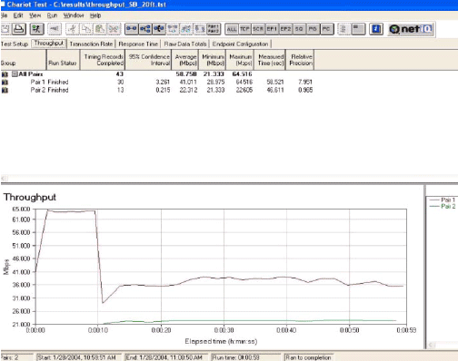 Как видно из диаграммы, высокоскоростная (порядка 60 Мбит) передача в Dynamic Turbo режиме прерывается (переходит в одноканальный режим работы) при активации обычного 802.11g устройства. В результате обычный 802.11g функционирует с нормальной скоростью (около 20 Мбит), а Super G — со скоростью 35 Мбит. Все довольны и счастливы.