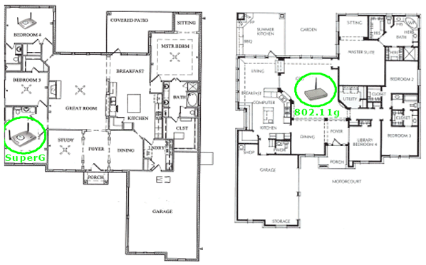 Super G Turbo и обычное 802.11g устройства находятся в соседних домах (к сожалению, никакой информации по расстояниям не приводится):