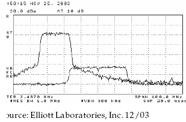 Измерения проводились независимой лабораторией Elliott Laboratories. В данном случае между устройствами находится капитальная стена, которая и ослабляет уровень сигнала устройства, работающего на сдвоенных каналах.